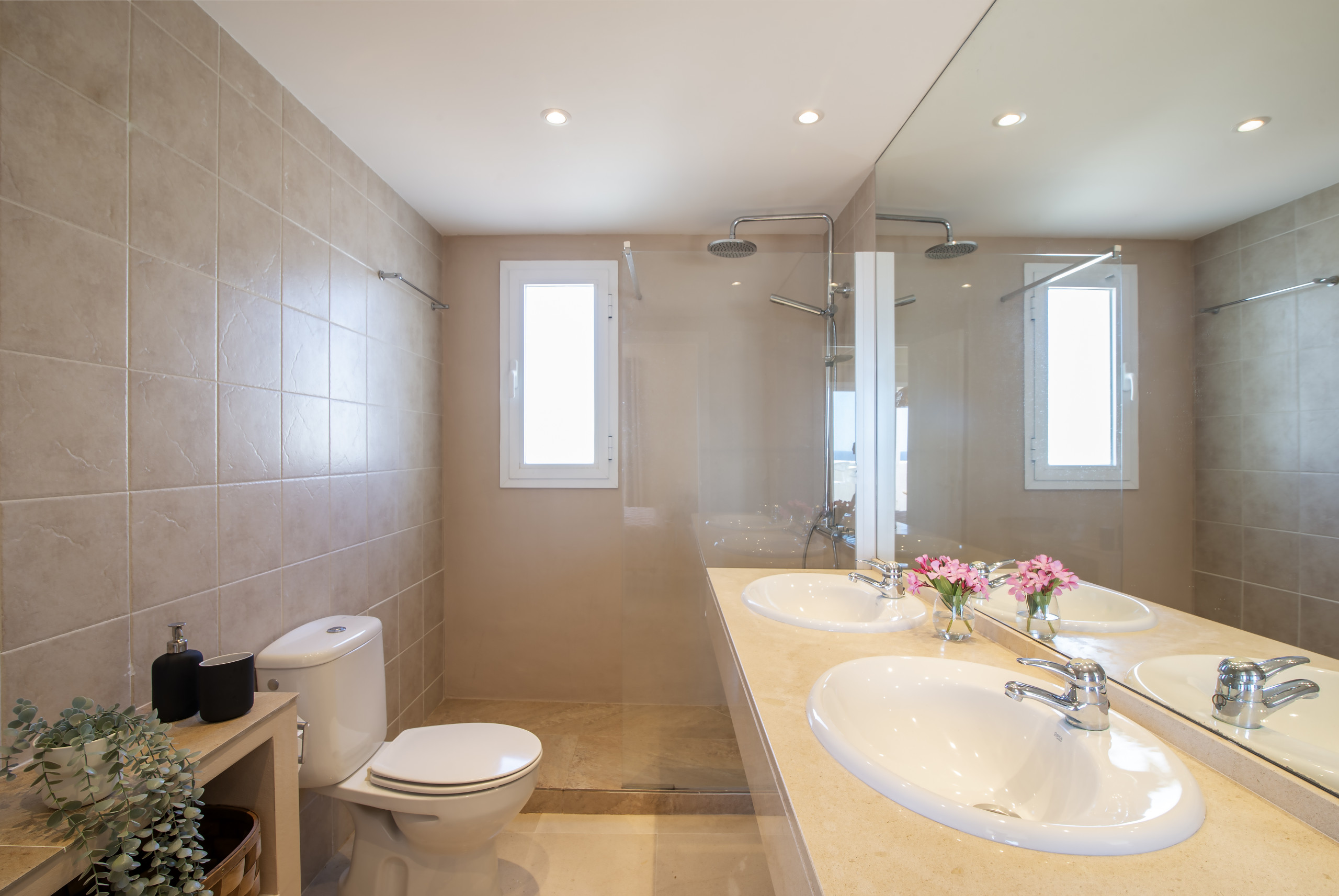 En la planta superior se encuentran dos dormitorios adicionales, ambos con baño en suite, lo que garantiza el máximo confort, privacidad e independencia para todos los residentes. Las dos terrazas ofrecen vistas espectaculares, sol durante todo el día y el entorno ideal para disfrutar de las cálidas tardes de verano, momentos de tranquilidad con un libro o la suave brisa del Mediterráneo.