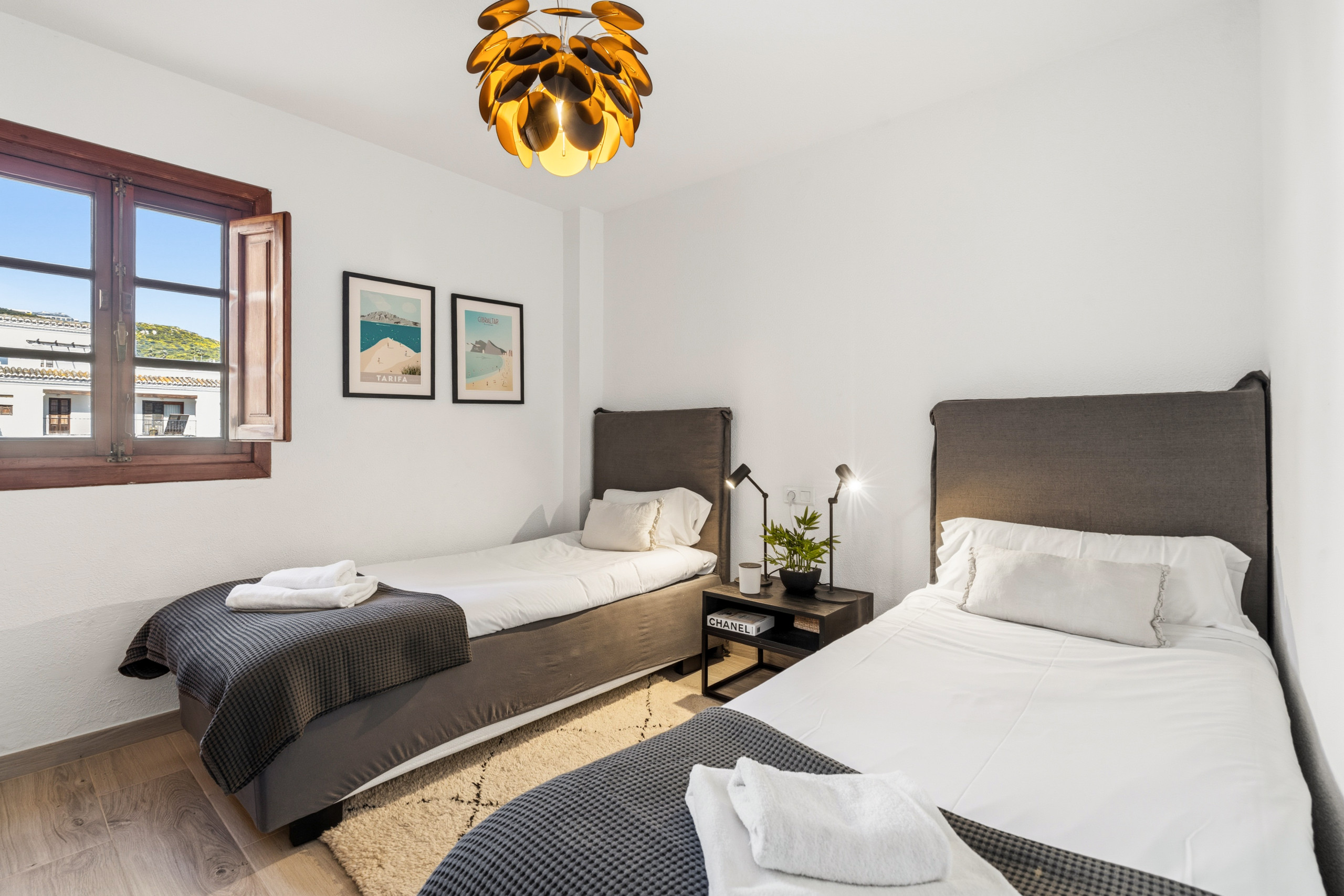 Bienvenido a este moderno ático con terraza en la azotea en el corazón de Manilva, un lugar perfecto para amigos, parejas o familias que desean disfrutar de unas vacaciones relajantes y cómodas en la Costa del Sol. El apartamento ofrece dos dormitorios espaciosos y dos baños, lo que permite que hasta cuatro huéspedes se alojen cómodamente. La distribución luminosa y espaciosa junto con la decoración elegante crean una atmósfera armoniosa e invitadora donde rápidamente se sentirán como en casa.