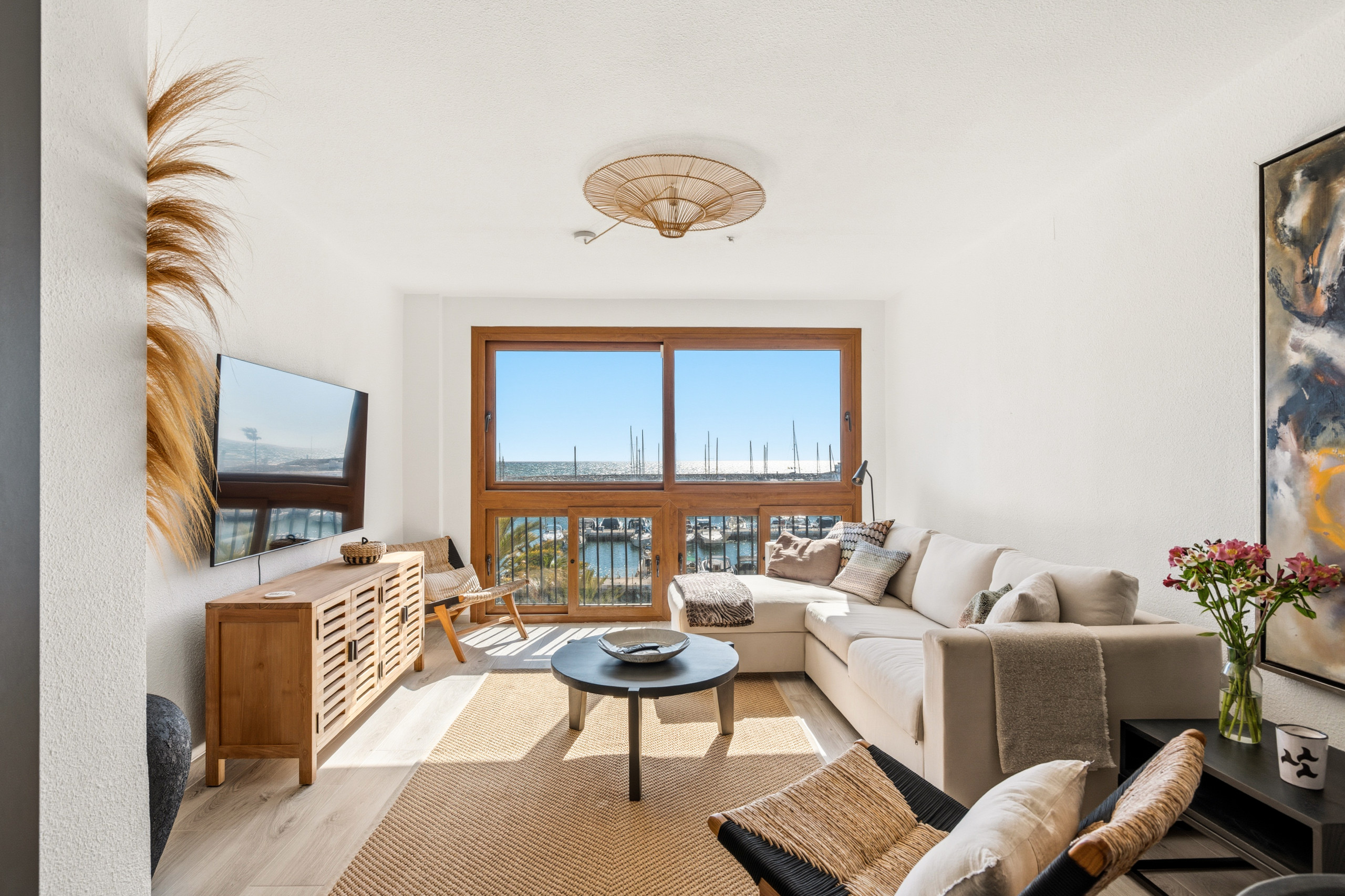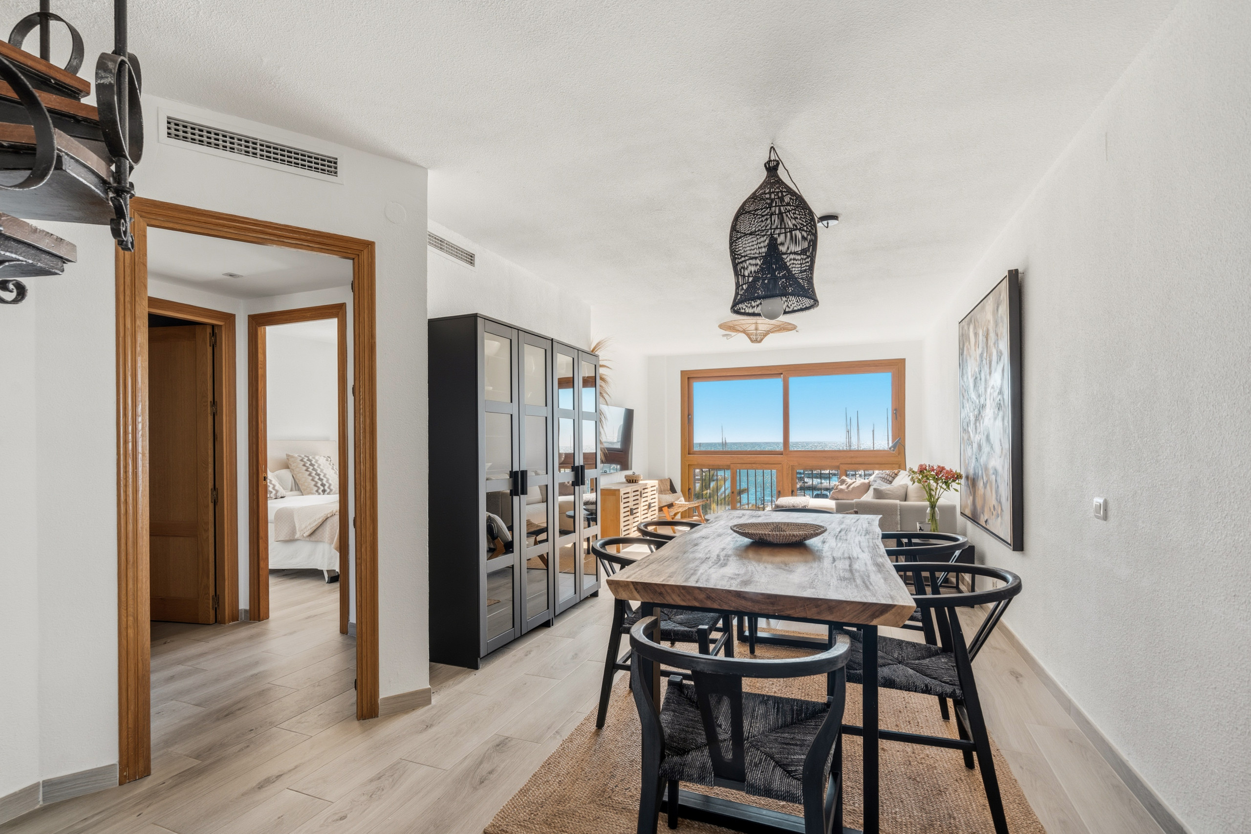 El apartamento ofrece dos dormitorios espaciosos y dos baños modernos, lo que lo hace ideal para familias, parejas o amigos que viajan juntos. La sala de estar abierta es luminosa y espaciosa, con asientos cómodos para relajarse después de un día en la playa o de excursiones a lo largo de la costa. La cocina completamente equipada permite preparar el desayuno, tapas o cenas para disfrutar en la terraza mientras el sol se pone sobre el puerto deportivo.