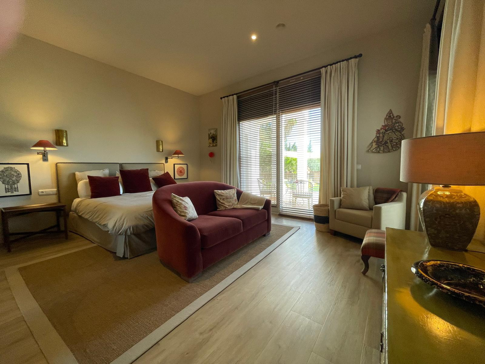 La villa está decorada con materiales duraderos y de alta calidad como madera, lana, lino y piedra natural, lo que evoca una sensación de lujo atemporal. Los dormitorios tienen suelos de madera recuperada para un calor ecológico, mientras que los espacios sociales cuentan con elegantes bases de mármol. Cada mueble y objeto decorativo ha sido seleccionado a mano por su artesanía y belleza, creando una atmósfera coherente y con alma.