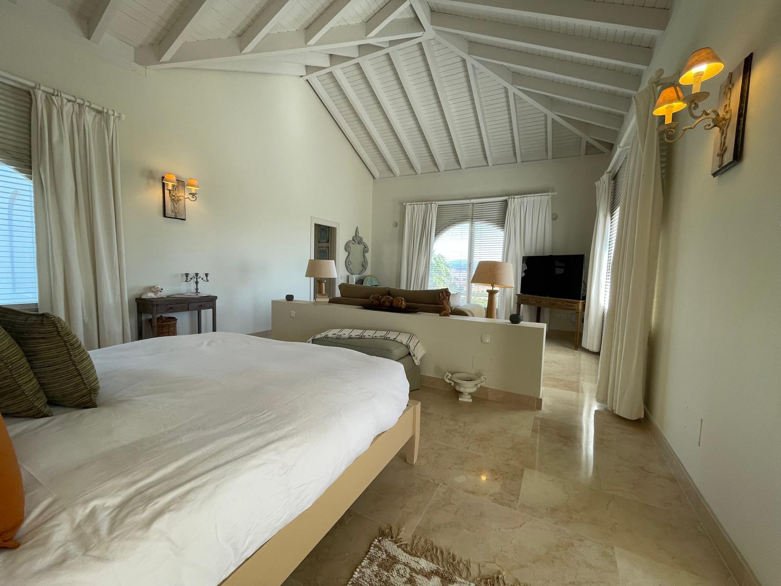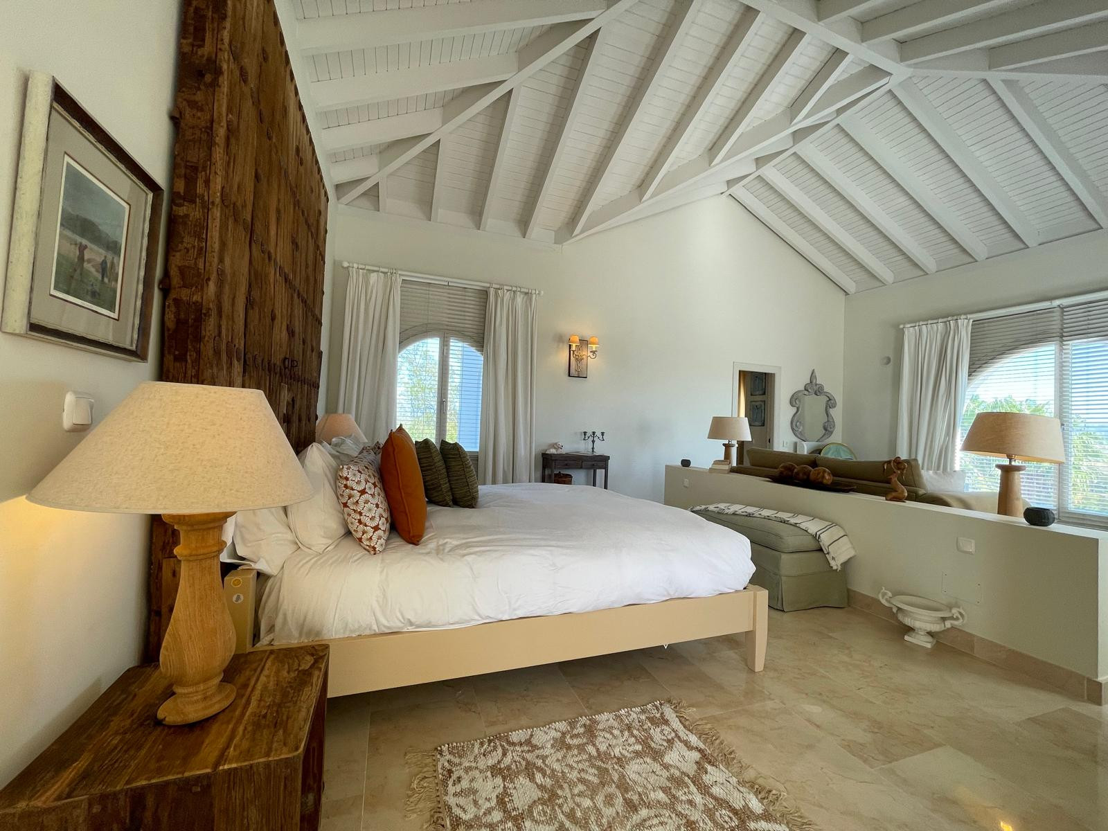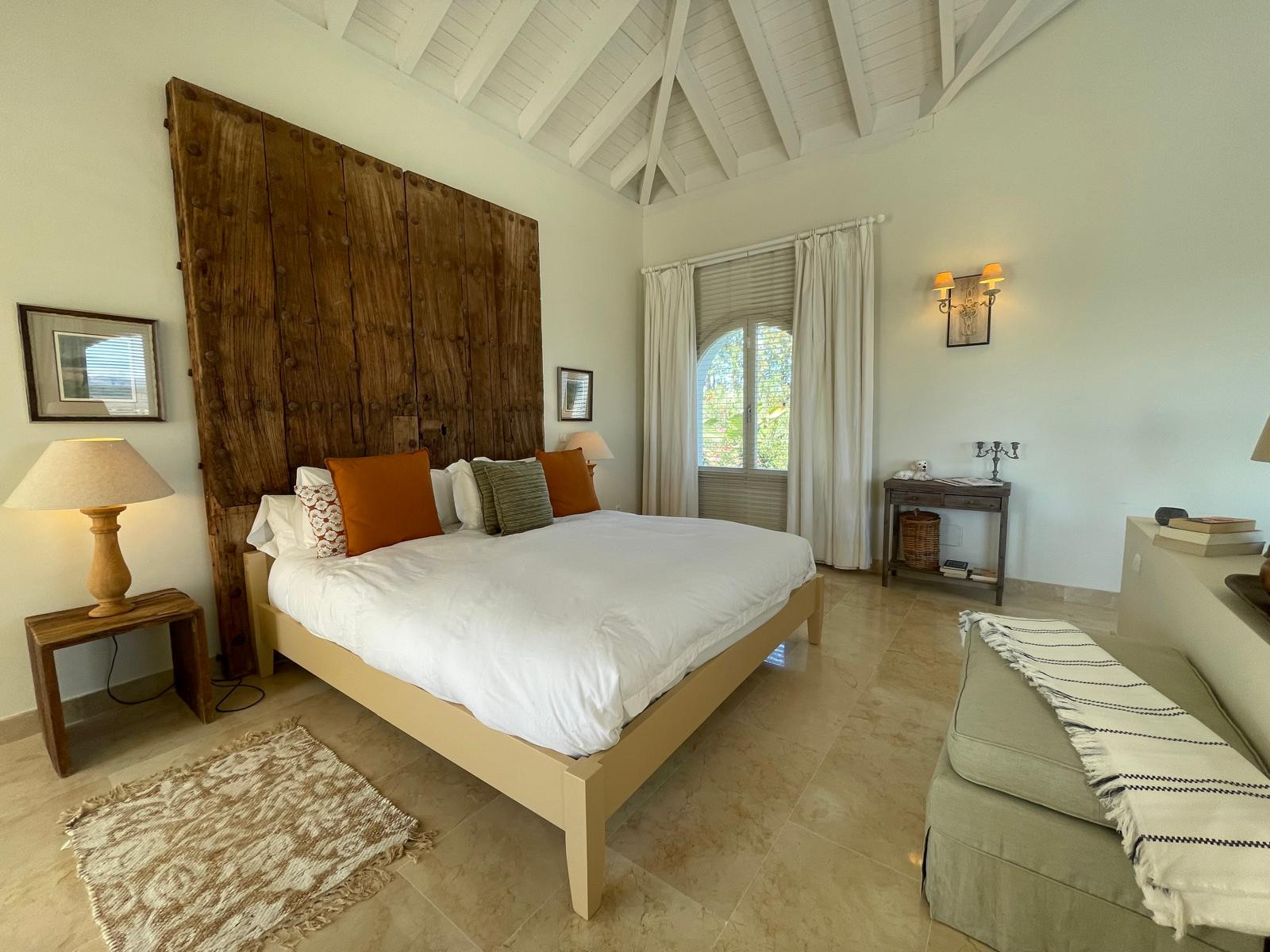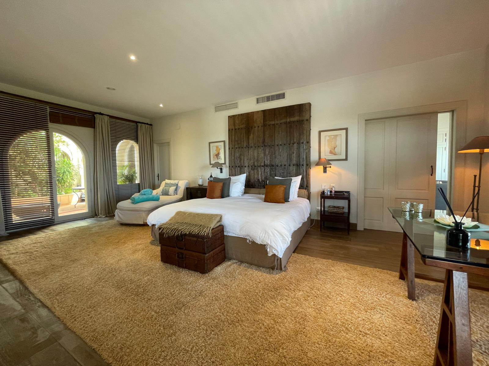 Disfruta de cuatro dormitorios espaciosos, cada uno con su propio baño de lujo. Dos sofás-cama adicionales reciben a invitados adicionales, lo que permite espacio para hasta 10 adultos en total, además de cunas para los más pequeños. La suite principal es un santuario luminoso con techo abovedado, una cama king size de ensueño y un rincón de lectura elegantemente decorado con detalles inspirados en el vintage. Tonos suaves de madera y textiles abundantes crean una atmósfera de pura calma y sofisticación.