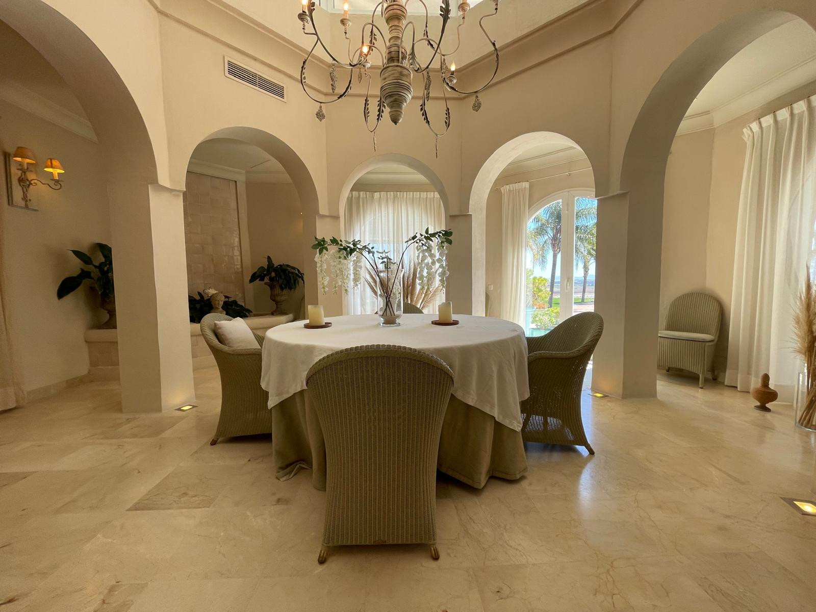 Disfrute de una comida en estilo dentro de un encantador patio cubierto de vidrio, enmarcado por elegantes arcadas y columnas que despiertan un romanticismo atemporal. Saboree las comidas con un impresionante telón de fondo de campos verdes, con muebles cuidadosamente seleccionados y detalles artesanales en materiales naturales que elevan cada reunión. Este espacio transforma una comida común en una experiencia inolvidable.