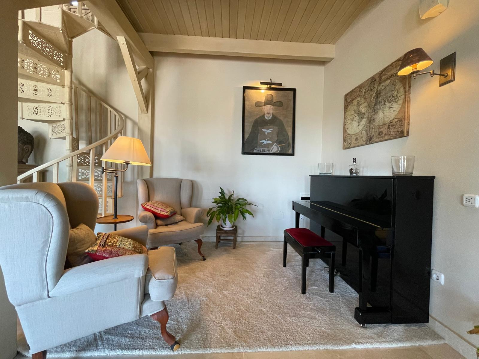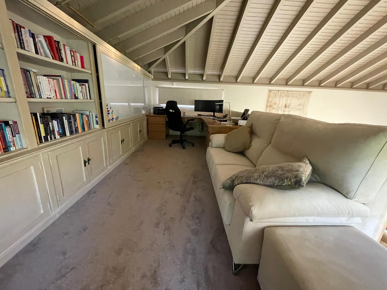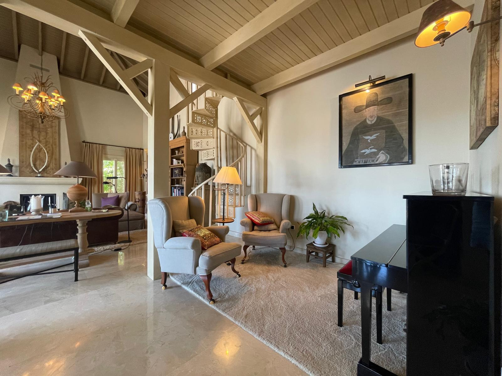 En el corazón del hogar se encuentra la espaciosa sala de estar, anclada por una magnífica chimenea abierta y asientos suaves que invitan a la convivencia y a noches acogedoras. Materiales naturales y duraderos —alfombras suaves y textiles táctiles— refuerzan el ambiente acogedor, perfecto para relajarse. Un encantador altillo funciona doblemente como una biblioteca tranquila y un espacio de trabajo, ideal para momentos silenciosos de inspiración o reflexión.