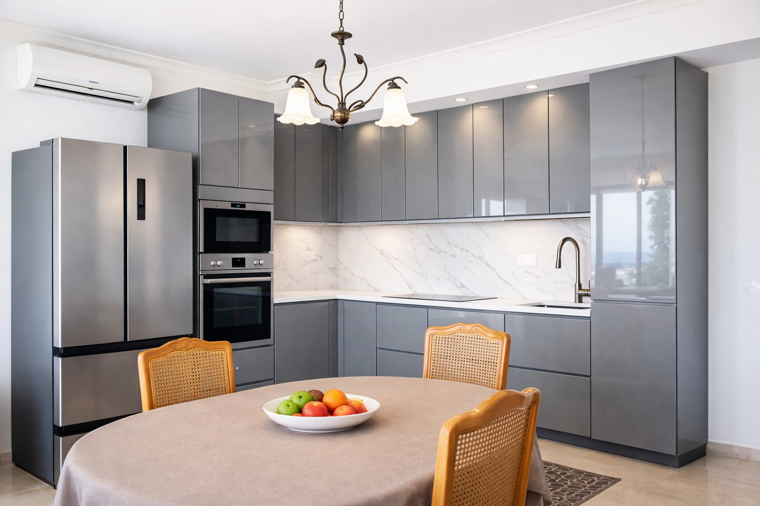 One of the apartment's greatest advantages is the large terrace, which is furnished and perfect for meals, social gatherings or relaxation in the sun. Here there is plenty of space for family and friends, and the terrace quickly becomes a natural meeting point for evening drinks, outdoor dinners or a moment of peace and quiet.