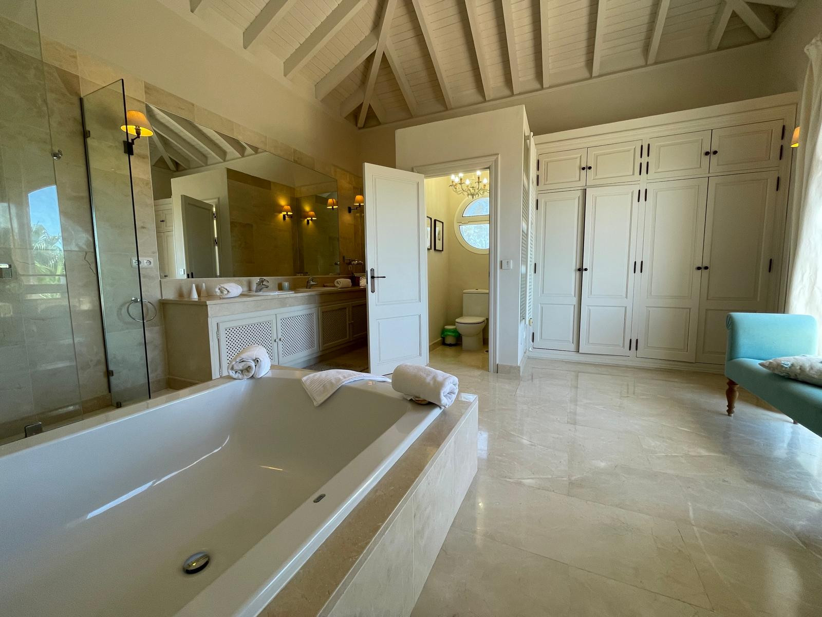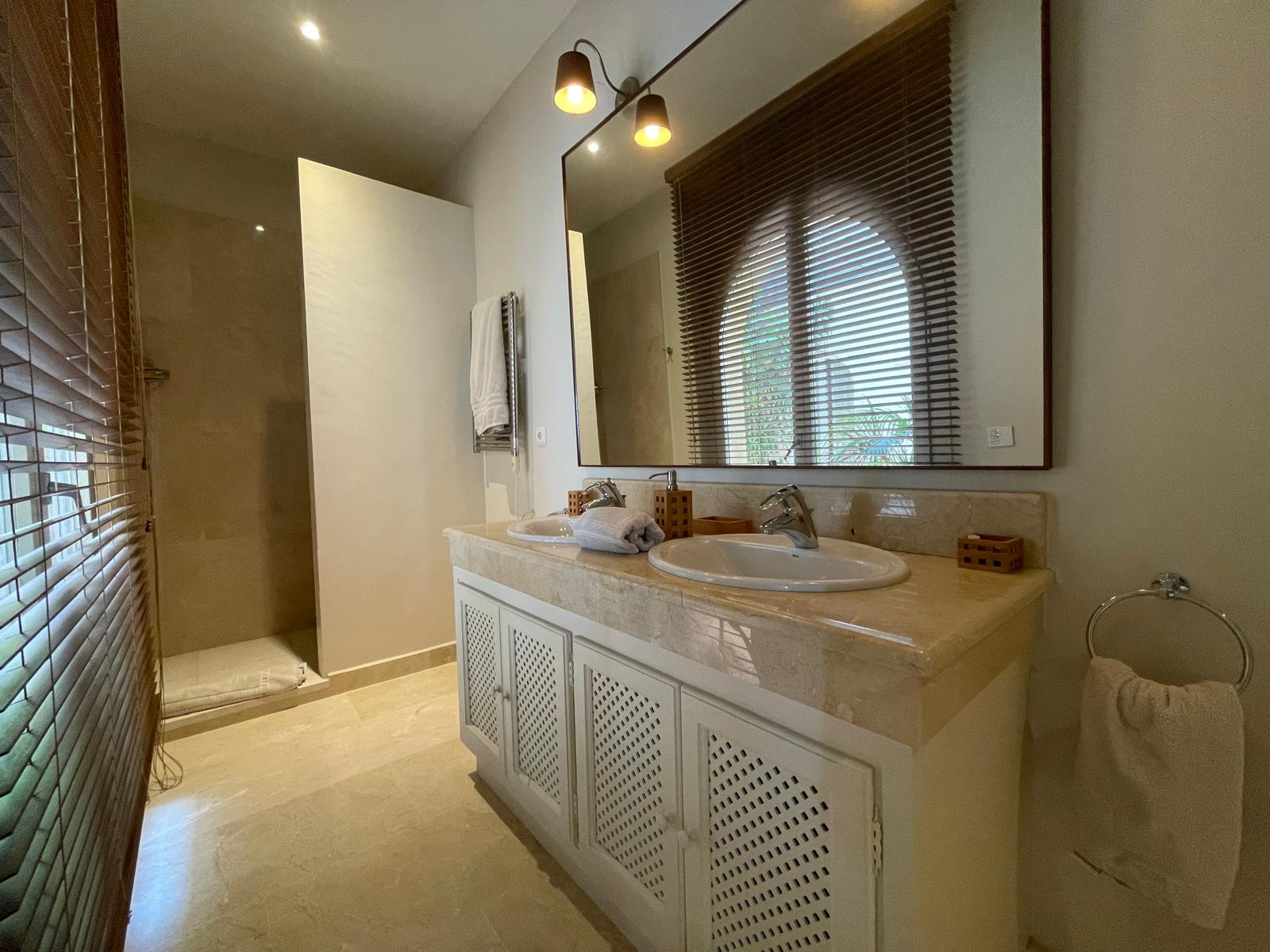 The kitchen masterfully combines functionality with artisanal charm, featuring wooden countertops, ceramic tiles, and premium appliances that make cooking a pleasure. Its design flows harmoniously with the villa’s overall aesthetic, ensuring smooth daily routines. For ultimate convenience, a dedicated housekeeper and gardener are available from 8:00 a.m. to 2:00 p.m., Monday through Friday. Fresh breakfast is served daily after 8:00 a.m., including weekends. Additional services, such as bespoke meals or other assistance, can be arranged on request for a modest fee.