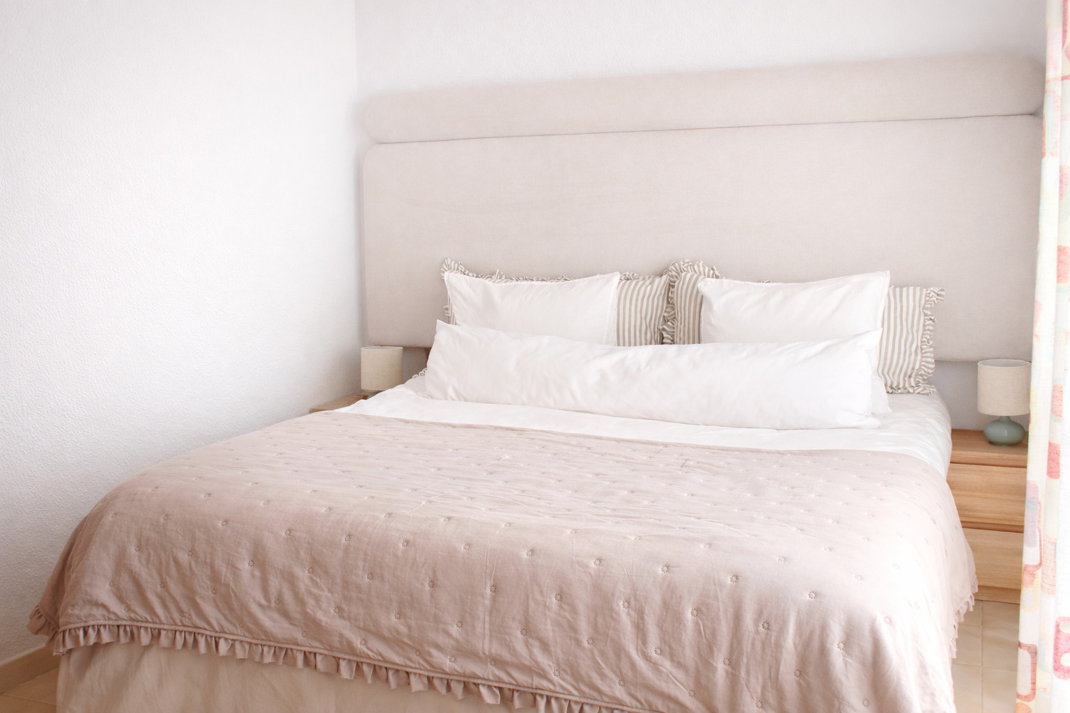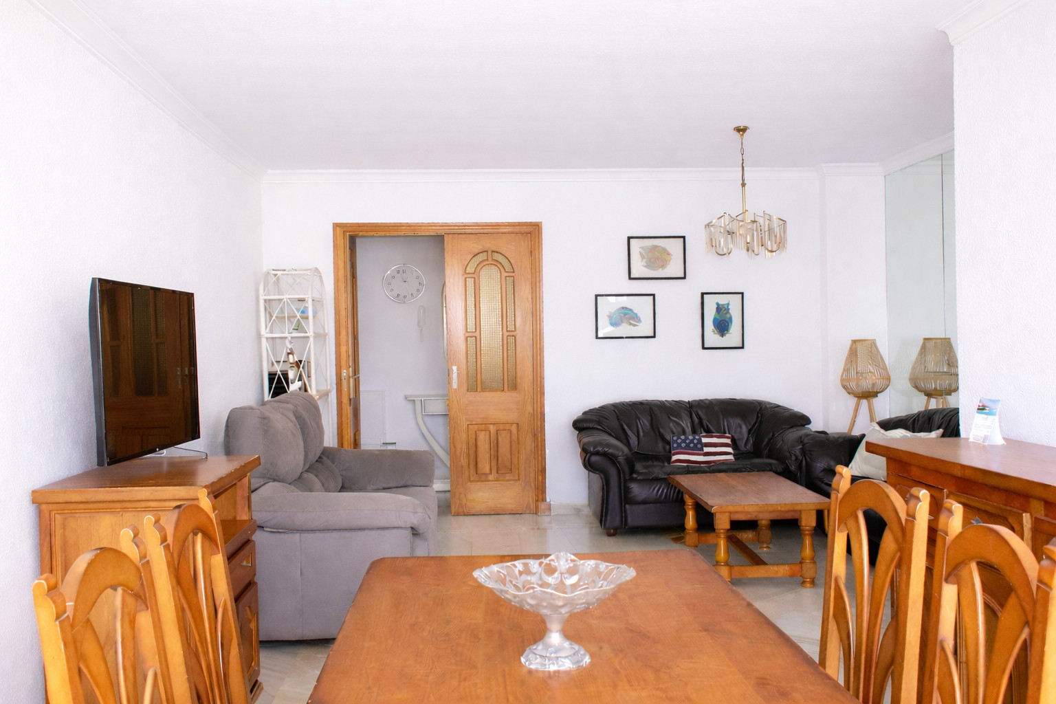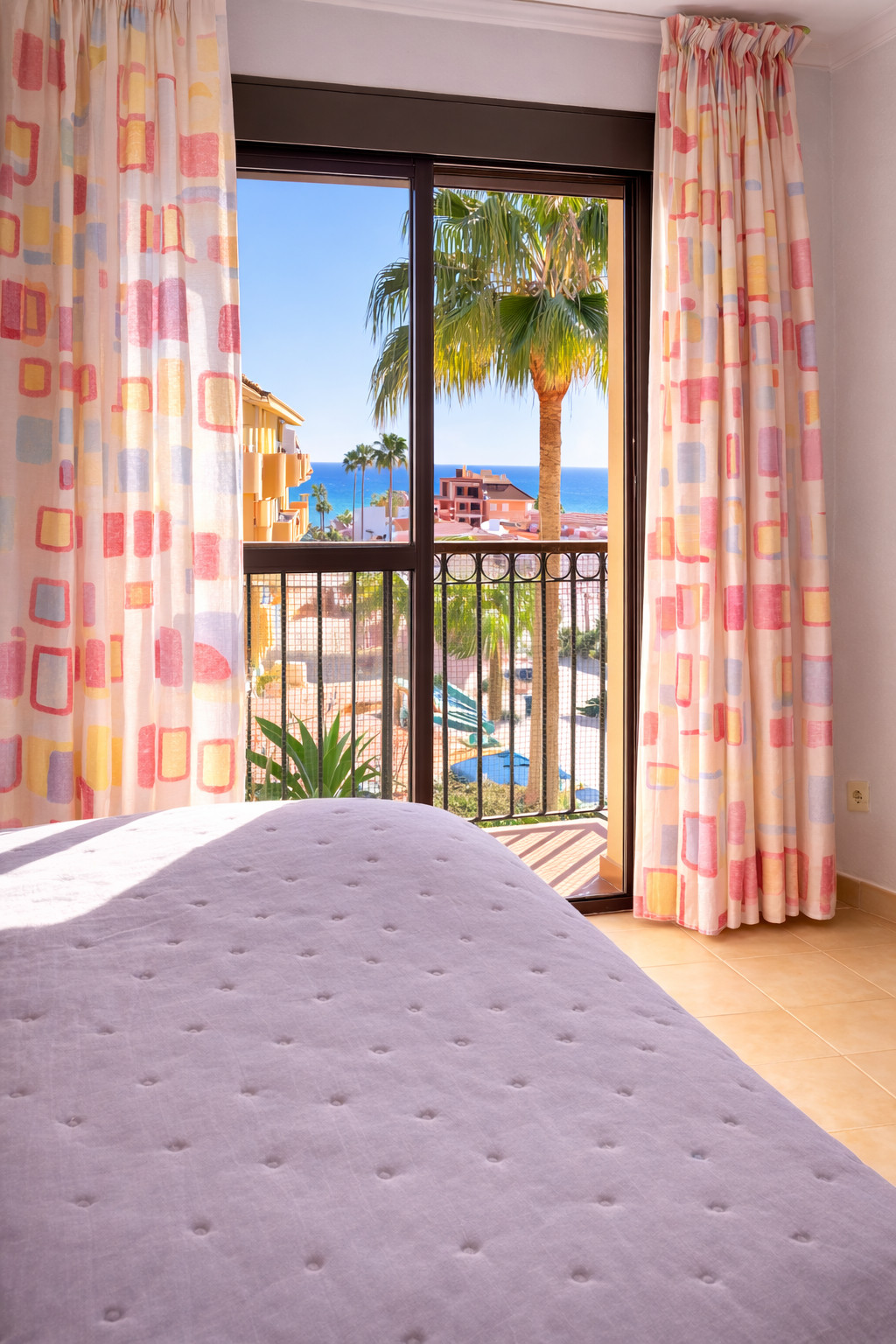 Lägenheten erbjuder två mysiga sovrum, ett med en härlig kingsize-säng och ett med två enkelsängar, samt en bäddsoffa i vardagsrummet. Med plats för upp till sex gäster är den idealisk för både familjer och grupper. De två moderna badrummen gör morgonen smidig, och det fullt utrustade köket inbjuder till att laga frukost, tapas eller en romantisk middag hemma. Vardagsrummet är rymligt och ljust, med bekväm sittplats, plats för umgänge och lugn för avkoppling efter en dag i solen.
