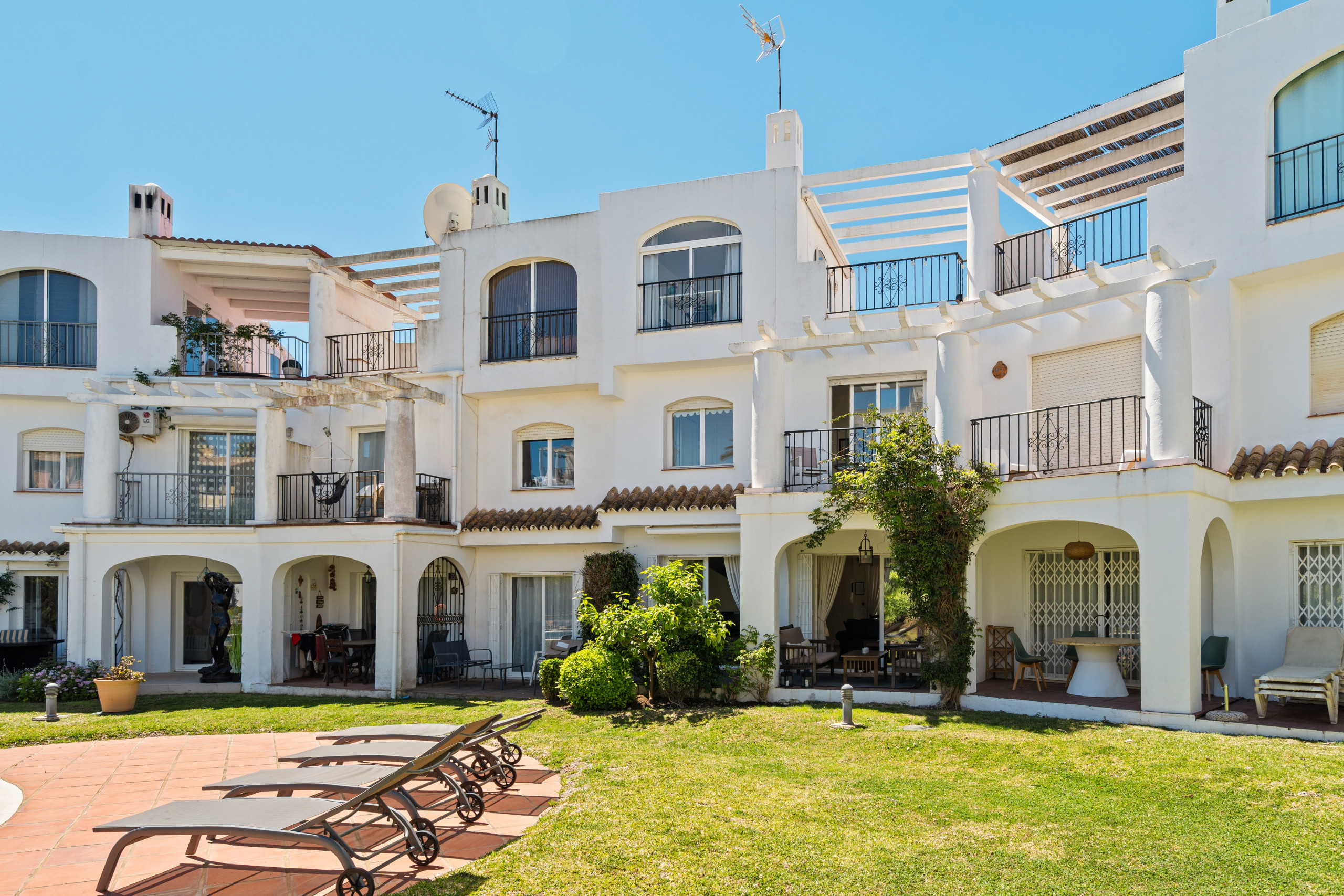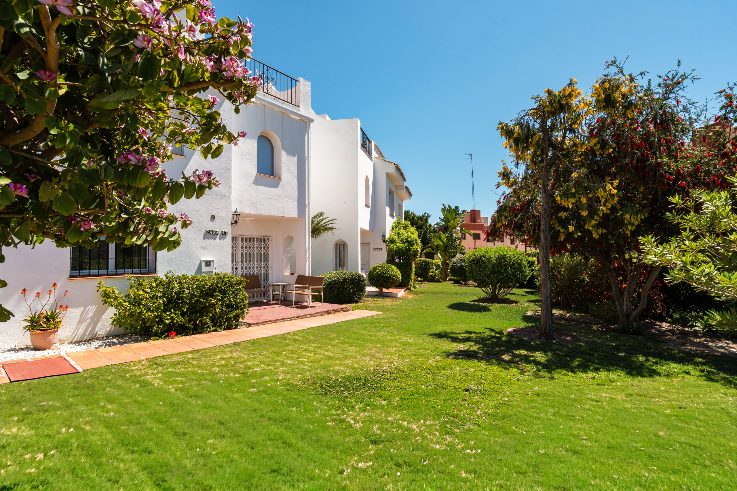 Trivsamt radhus i tre plan beläget i lugna och eftertraktade Duquesa Golf, med natur direkt bakom huset.